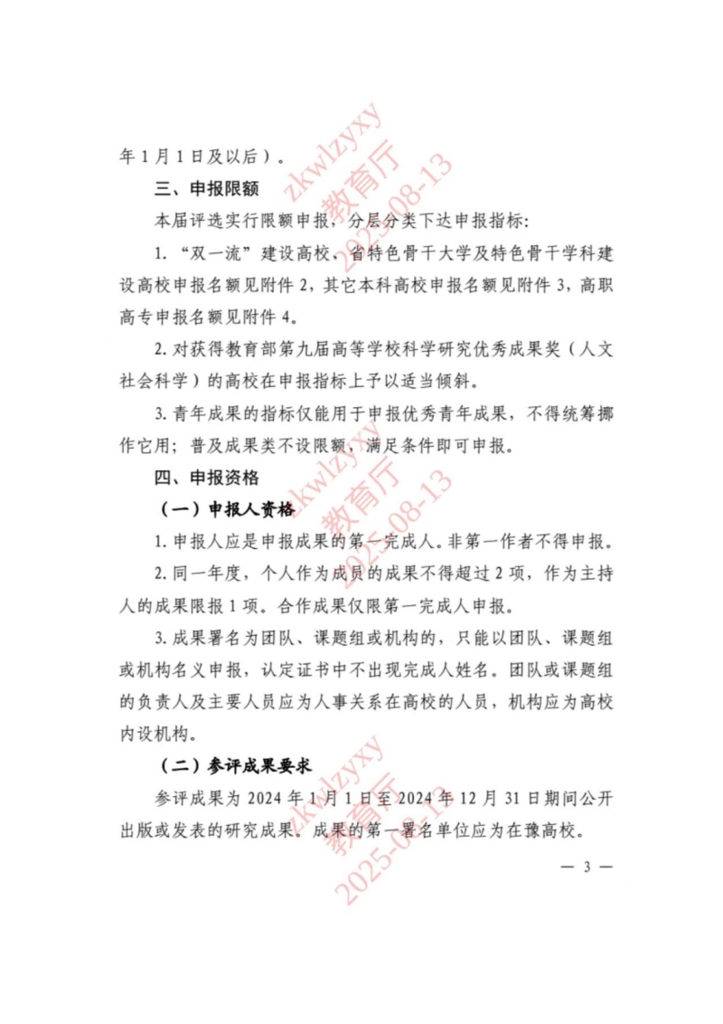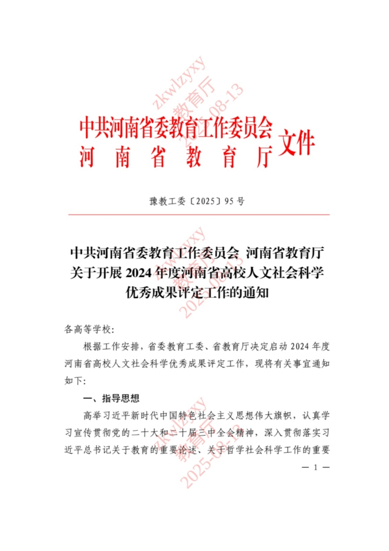 河南省教育厅关于开展2024年度河南省高校人文社会科学优秀成果评定工作通知