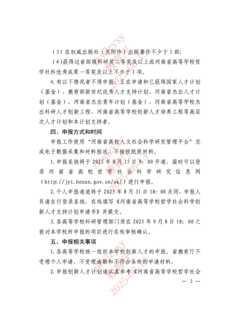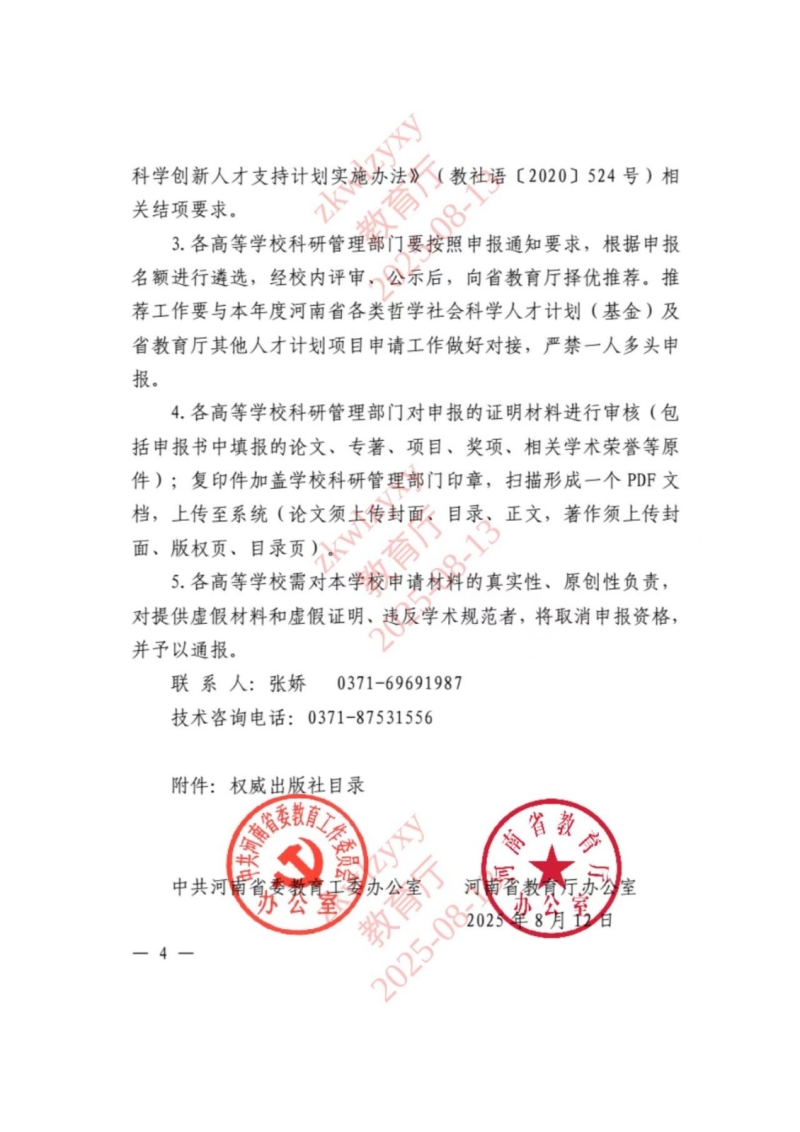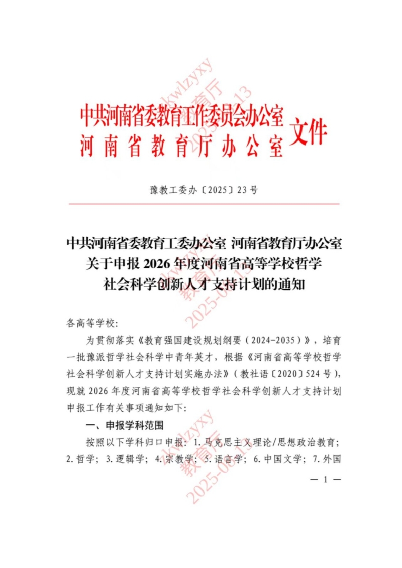 河南省教育厅办公室关于申报2026年度河南省高等学校哲学社会科学创新人才支持计划的通知