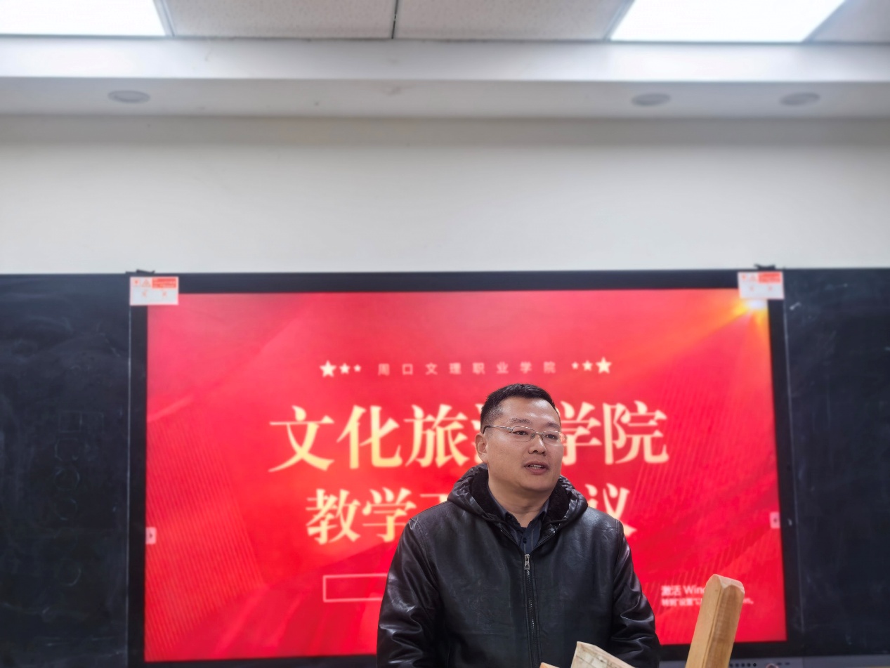 2026年1月8日下午,周口文理职业学院文化旅游学院全体教师业务学习会议在实训楼A103顺利召开,学院全体教师参会。此次会议旨在统一思想、明确目标,确保本学期各项教学任务圆满收官,并为即将到来的假期筑牢安全防线。会议由文化旅游学院负责人彭宝攀主持,他首先从学院的整体运行情况出发,对过去一段时间学院在专业建设、教学管理以及学生活动等方面取得的阶段性成果进行了全面回顾与总结,肯定了全体教师在日常工作中的辛勤耕耘与无私奉献。随后,彭宝攀话锋一转,重点强调了临近期末的关键时间节点,他指出,越是到了收官阶段,越是要保持清醒的头脑和严谨的工作作风,全体教师务必严格遵守教学纪律,认真梳理剩余的教学内容,确保课堂教学质量不打折扣,同时要密切关注学生的学习状态,做好期末复习指导与考前心理疏导,以高标准、严要求完成本学期的教学收尾工作。